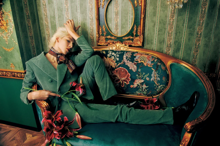 撮影でも、まさに流れるような優雅なポージングと表情で、どこかセンチメンタルなムードまでも漂わせ、繊細なロマンティックさ豊かに表現した。